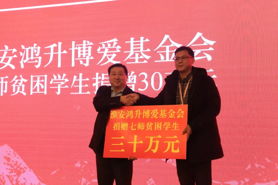 日期:2018-11-1411月14日,淮安鸿升博爱基金会爱心助学活动在新疆生产建设兵团第七师隆重举行。七师党委书记、政委刘新建,师党委常委、副师长、淮安援疆前方工作组组长周青,江苏鸿升企业集团董事长、淮安鸿升博爱基金会常务理事长左培生等领导出席了活动。 -