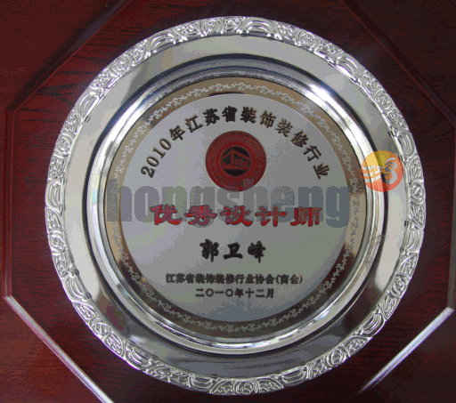 日期:2011-08-15热烈祝贺我公司设计师郭卫峰,荣获2010江苏省建筑装饰工程优秀设计师奖项! -